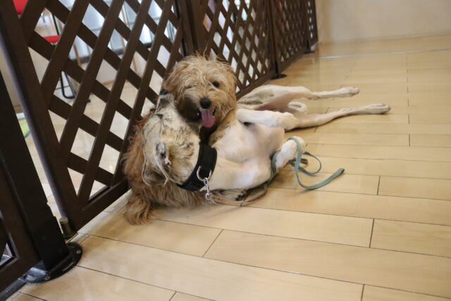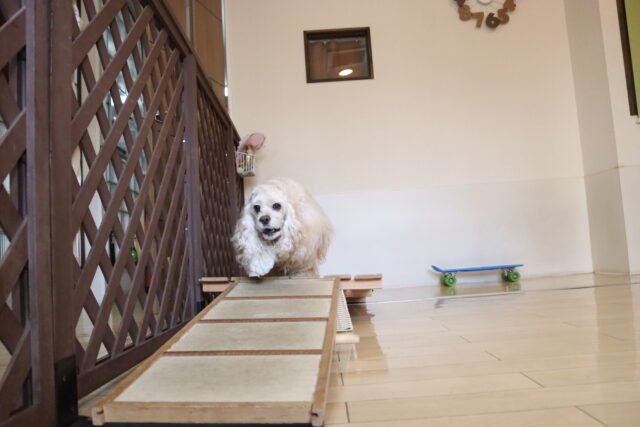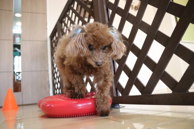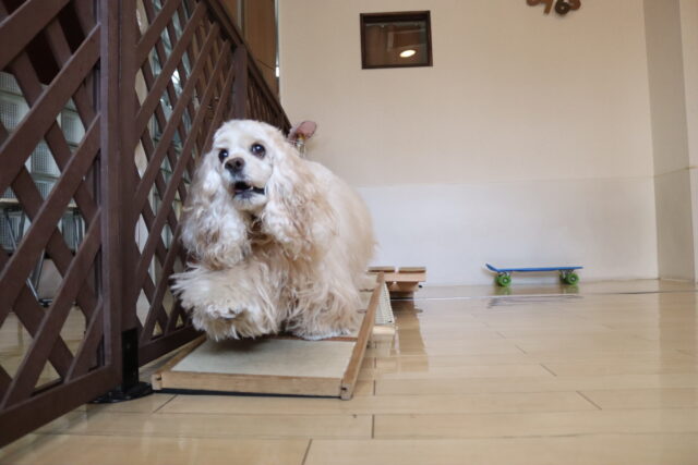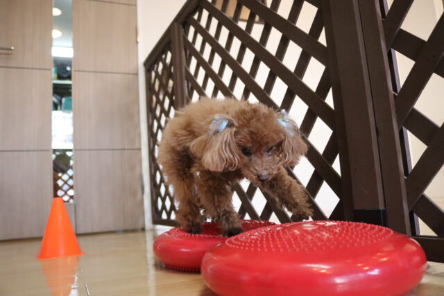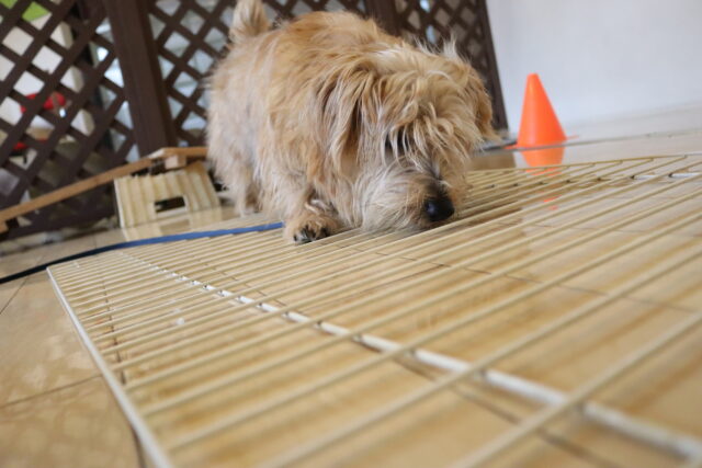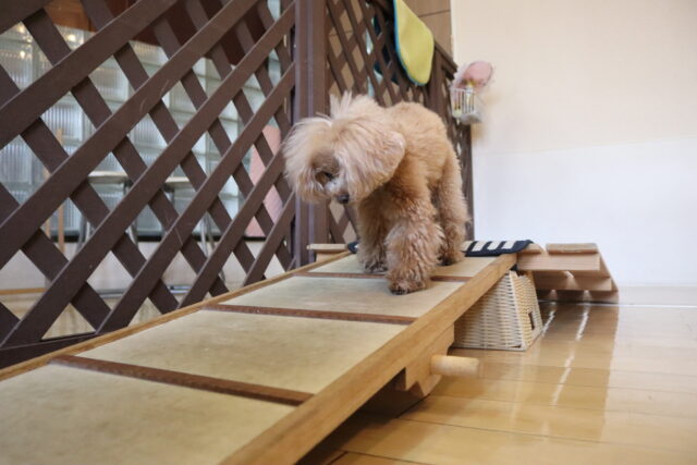シルヴィーちゃんと金ちゃんはスノコやシーソーを使い足場慣れ!