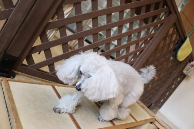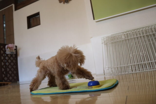 サークルを持ってくると逃走していましたが、フードの誘導で本体の上に乗ることが出来たね👏