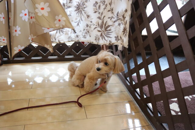 なので今日は離れたところで傘の開閉を見学!少しずつ慣れていけるよう頑張ろうね!