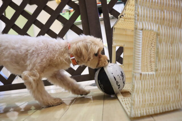具材のレトリーブがまだまだ練習中のむぎくん!持って来れずに戻ってきたり、