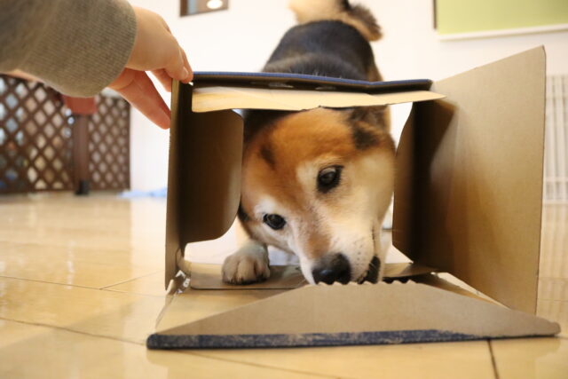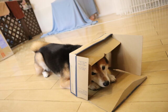 段ボールくぐりはこーんなに小さな段ボールで(*´ω`)