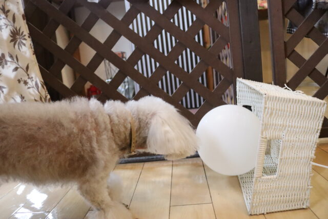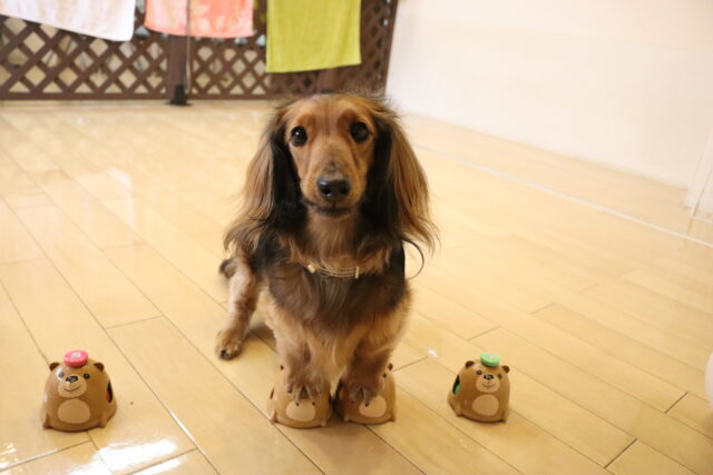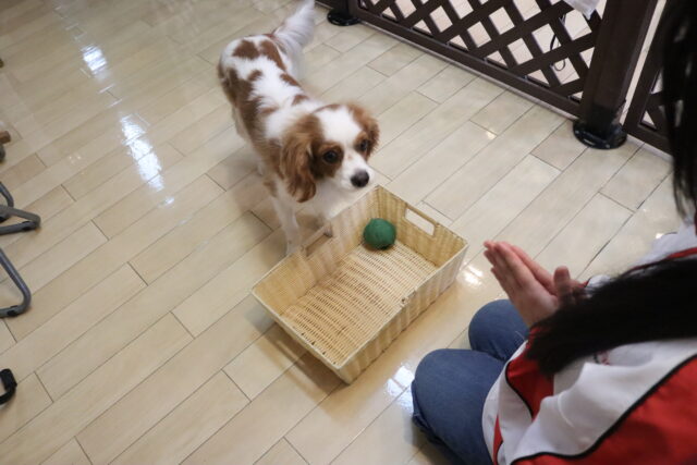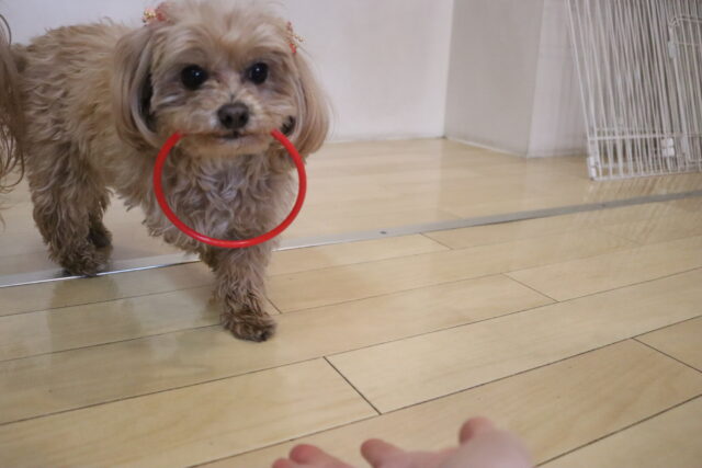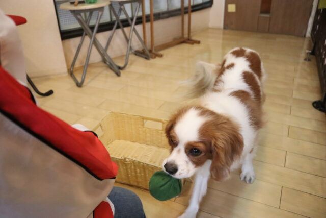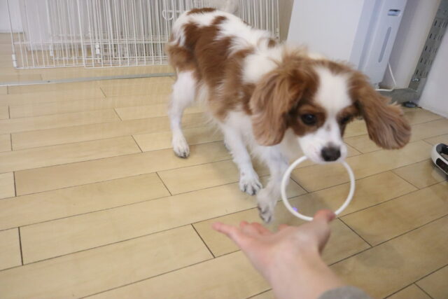 ルルちゃんは苦手なダーツのボールのレトリーブも練習🌟