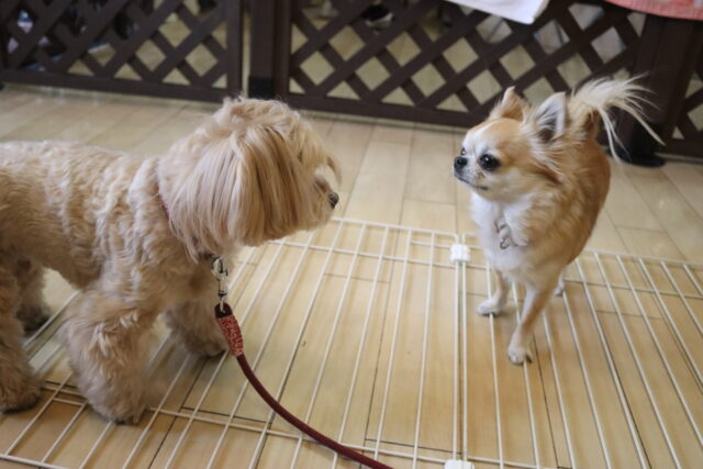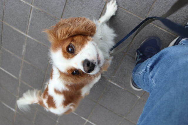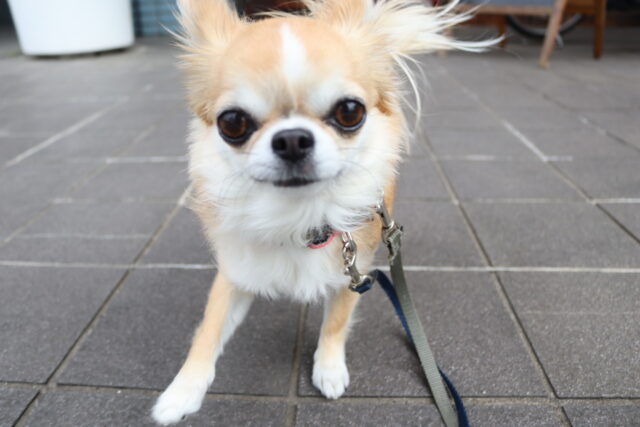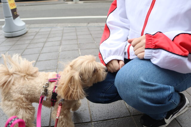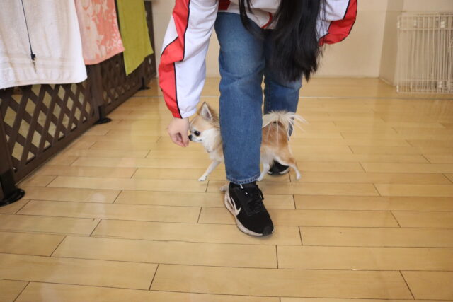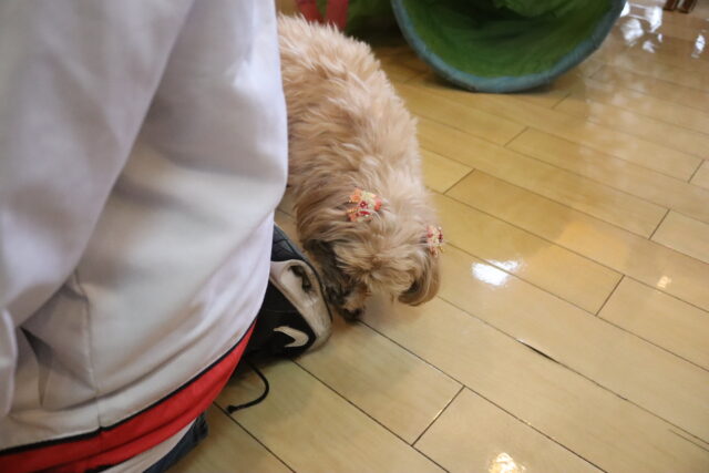 茶々ちゃんはお外で声を掛けてもらって、まずはクンクン匂い取り☆