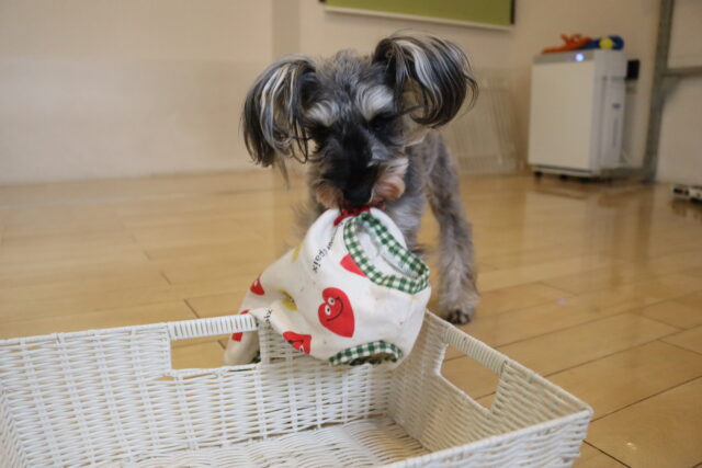こむぎちゃんは自分のお洋服をお片付け🎵