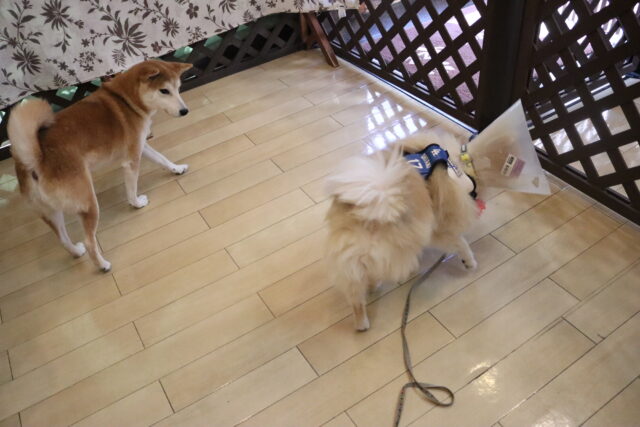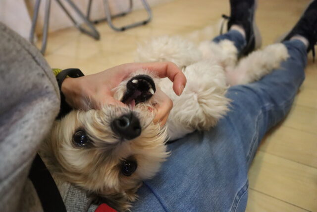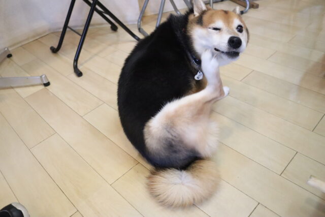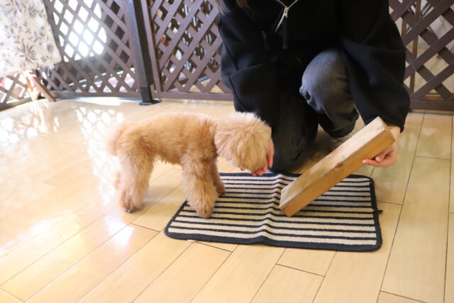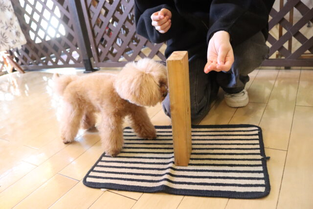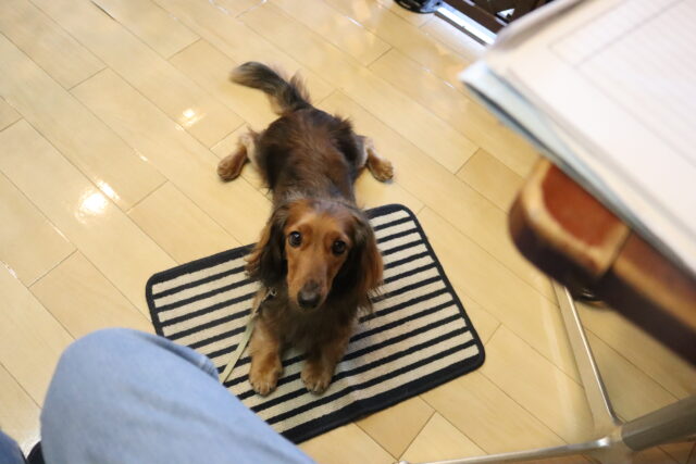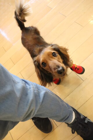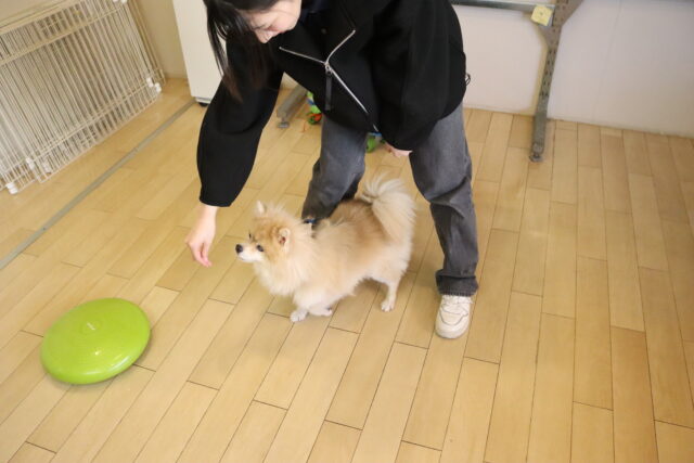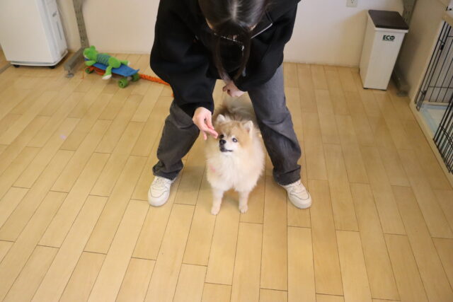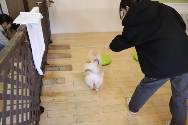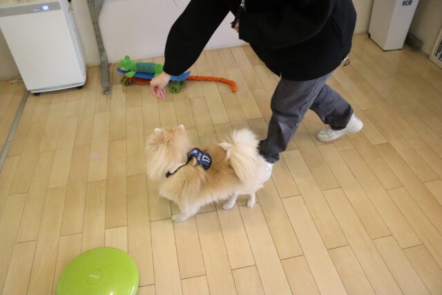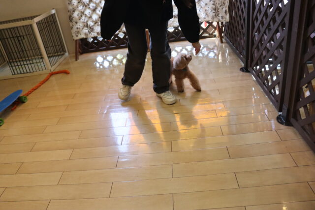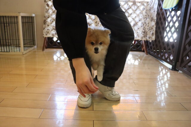 ぐるっと足の周りを回っている間にスタッフもパピーくんと同じように1回転!
