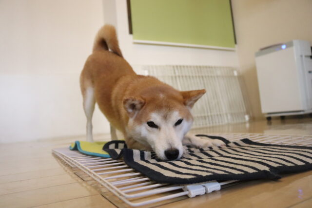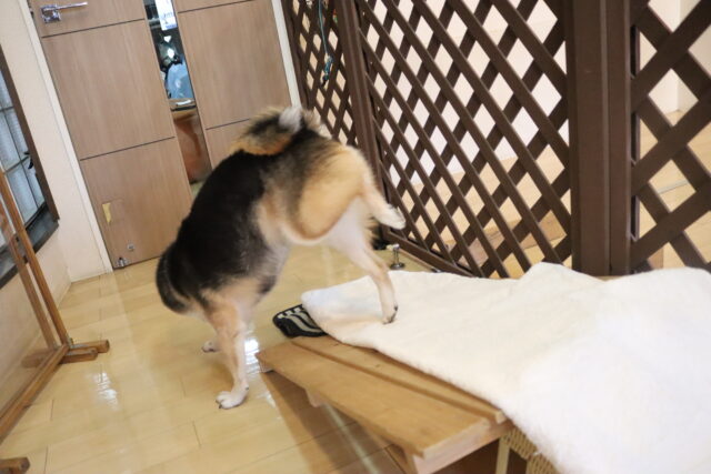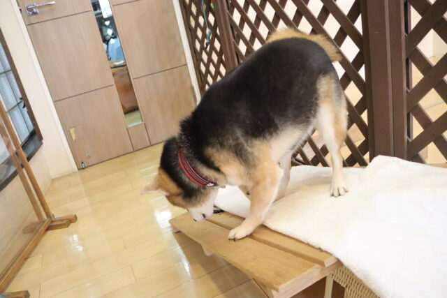 ビヨーンと最大限体を伸ばし本体の上に乗らないようにしていましたが、何だかんだでしっかりと4つ足全て乗ることが出来たね♬