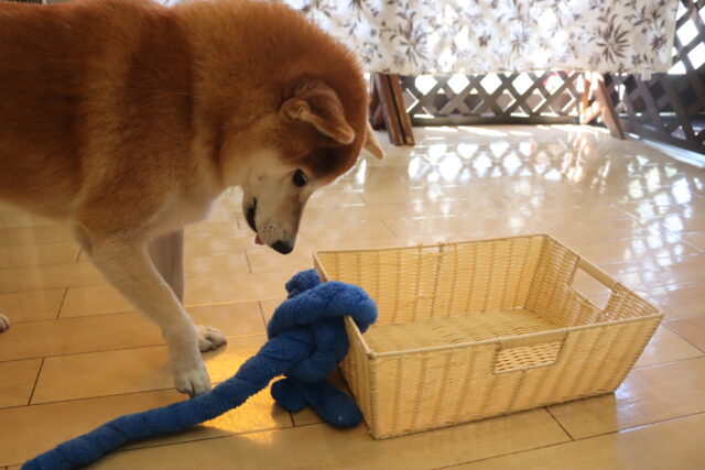 ただのオモチャ遊びだと思っていた青くんはカゴがついてくると「おやっ?」とフリーズし…