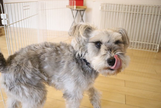マズルを掴むと少し引き気味💦少しずつ慣れていこうね!