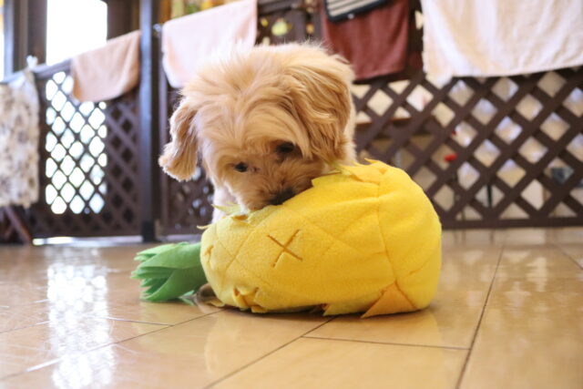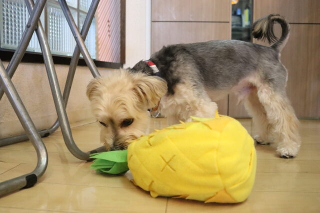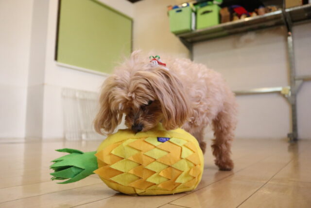 今日は全頭、パイナップルの知育玩具を使って遊んでいます!
