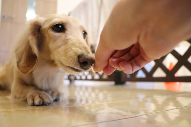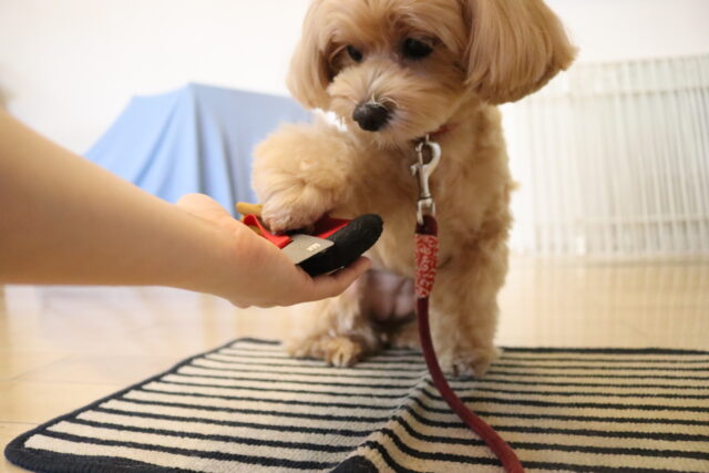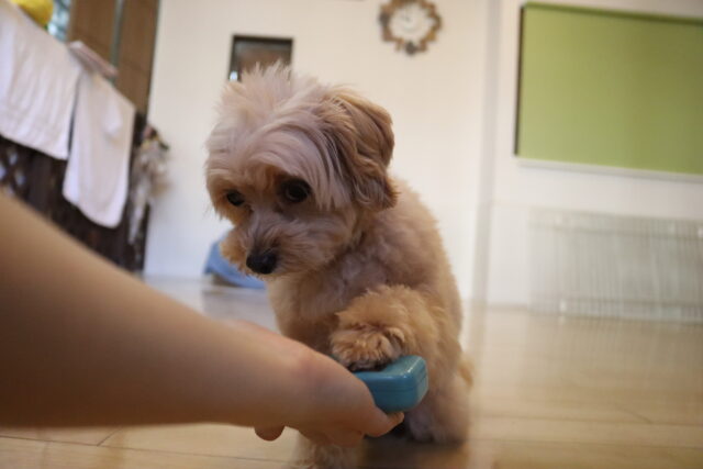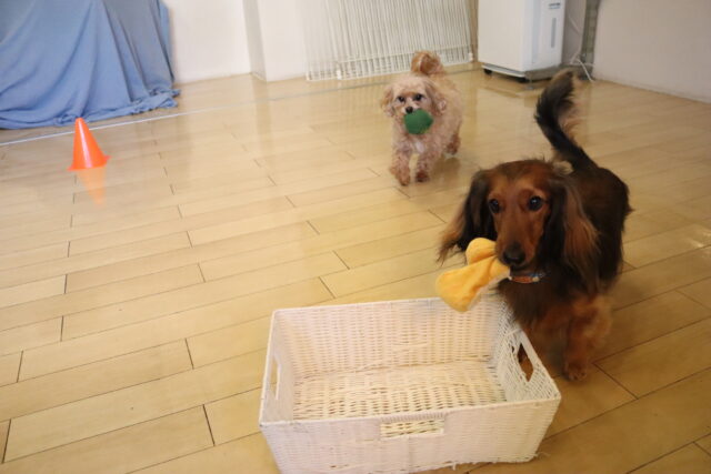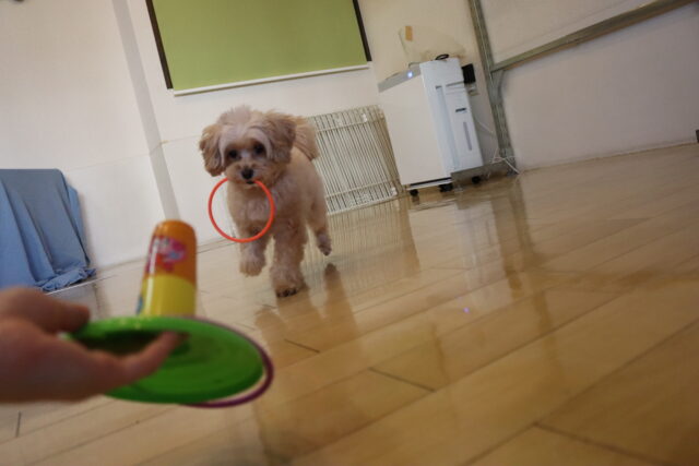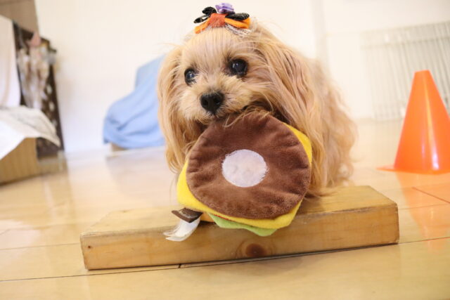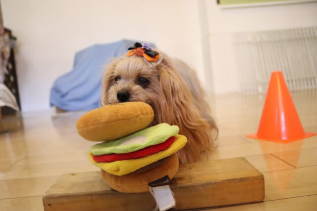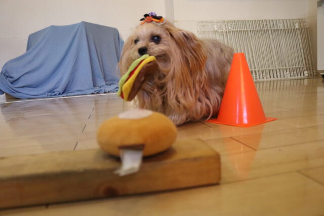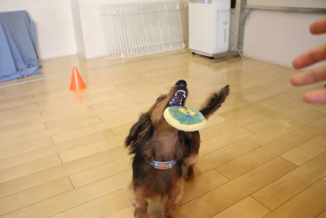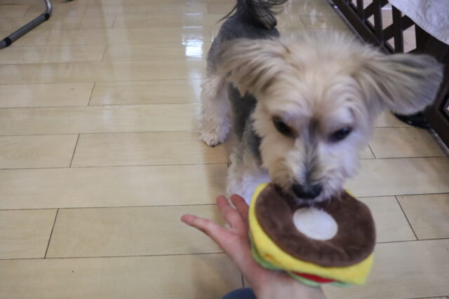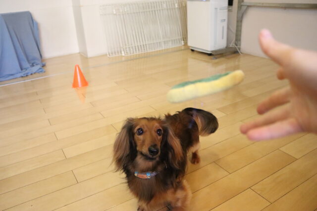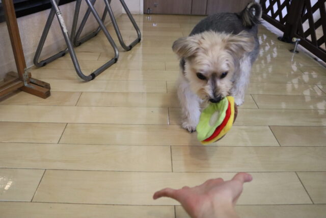 むぎくんはハンバーガー作りを目指してレトリーブ練習!