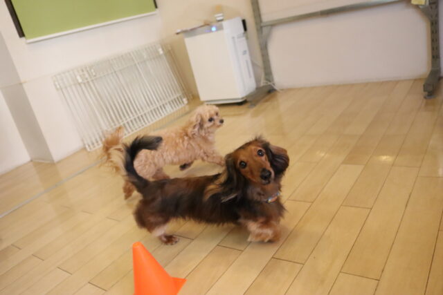 お片付けやコーン回ってなど息ぴったりの2頭でした♪