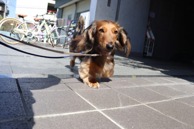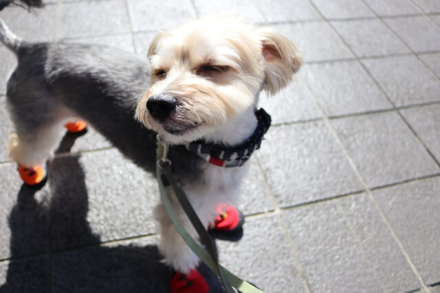 靴を履いてお散歩練習にも出ています!