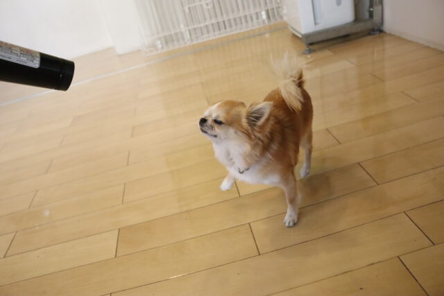 上から風を当てると「うわっ!」と逃走していたので様々な角度からの風に慣れていきたいね♪
