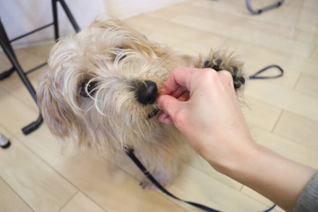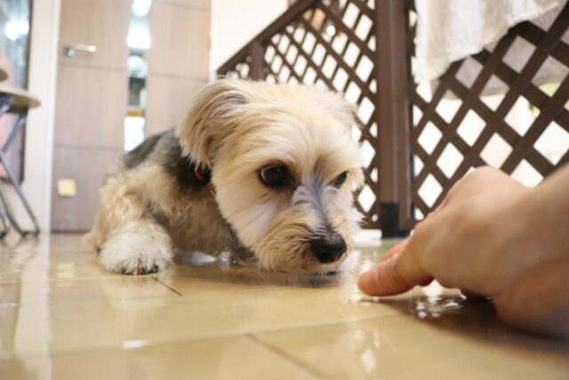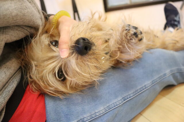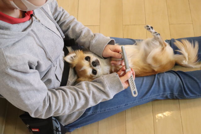 口周りを触られる練習では少し体に力が入ることがあるので引き続き練習頑張ろう✊