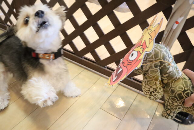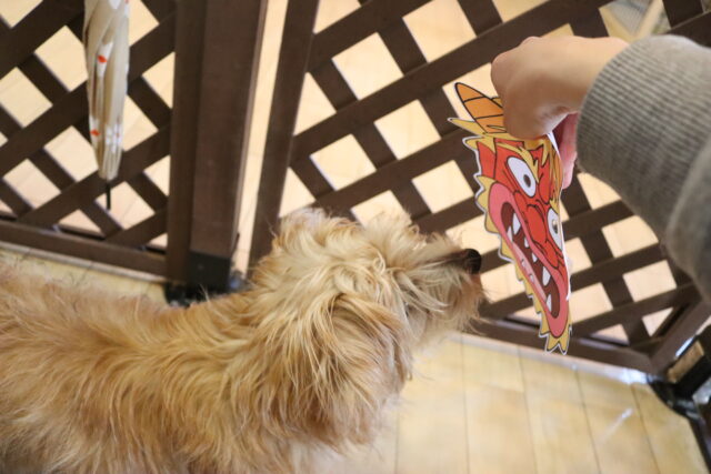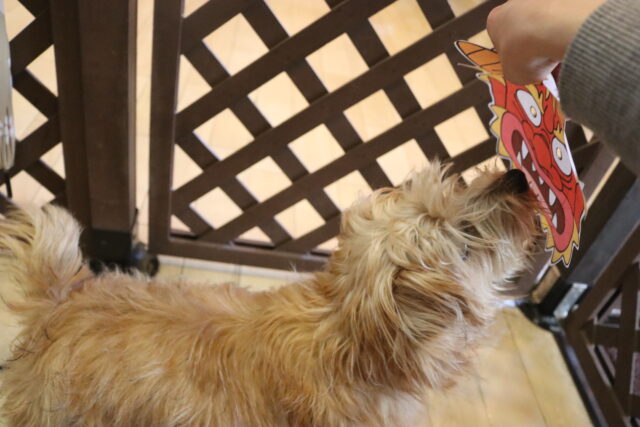 鬼のお面を見せるとビックリした表情のむぎくん!