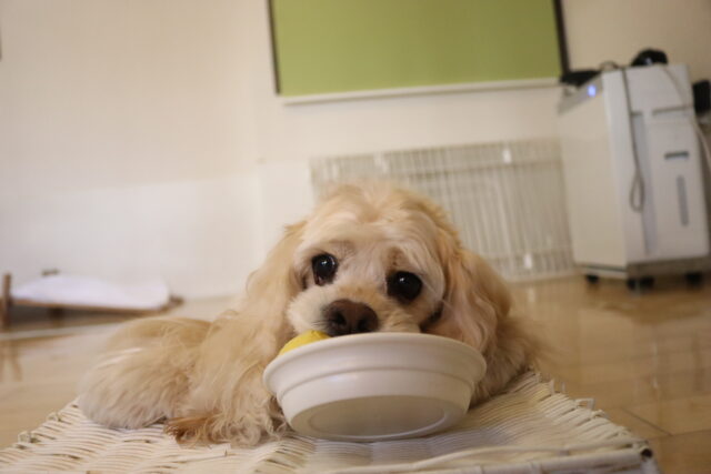 「いただきまーす!」とモグモグと食べ始めるベルちゃんです😋