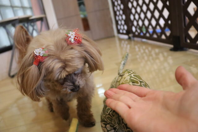 落ち着いた後は慎重に匂いを嗅いで怖いものではないと確認していました♪