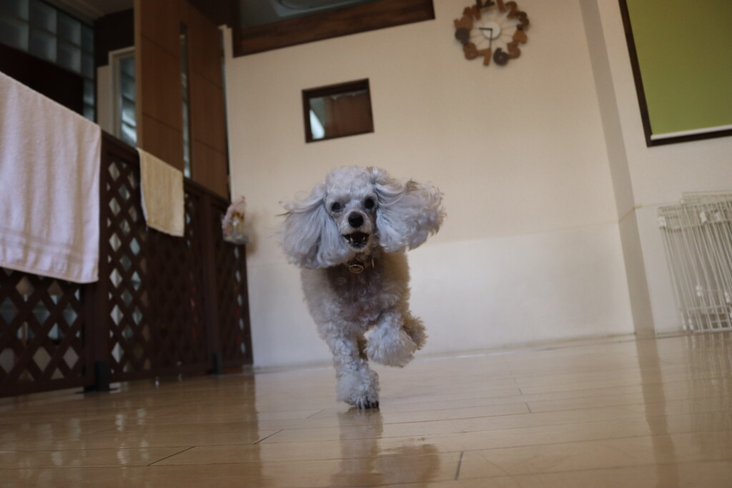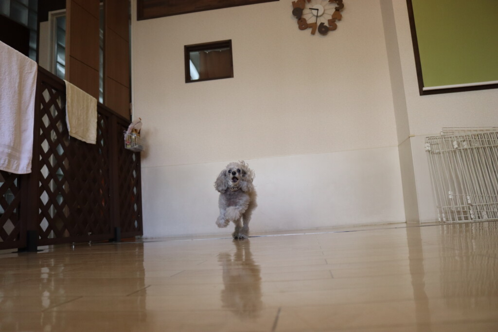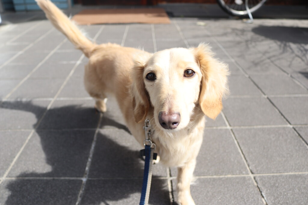 「ただいま」の声掛けで足の下をくぐってひょっこり顔を出す可愛いオスカーくん♡ぜひご覧ください(^^♪