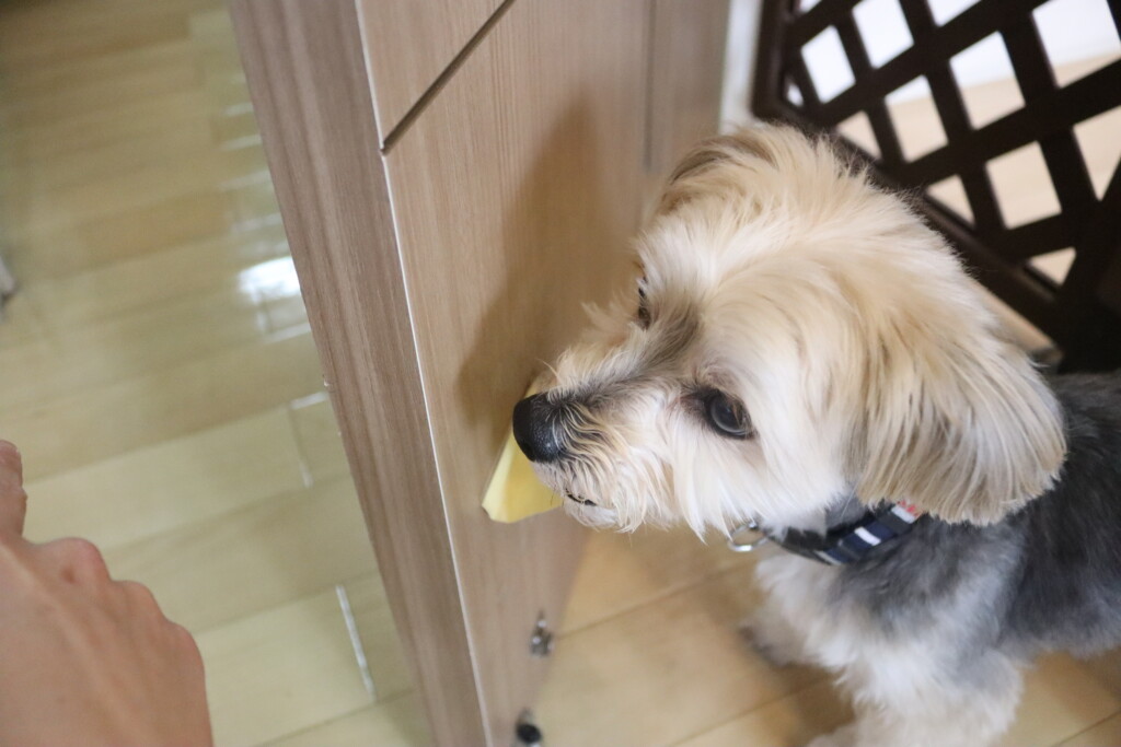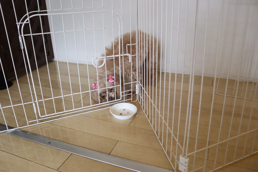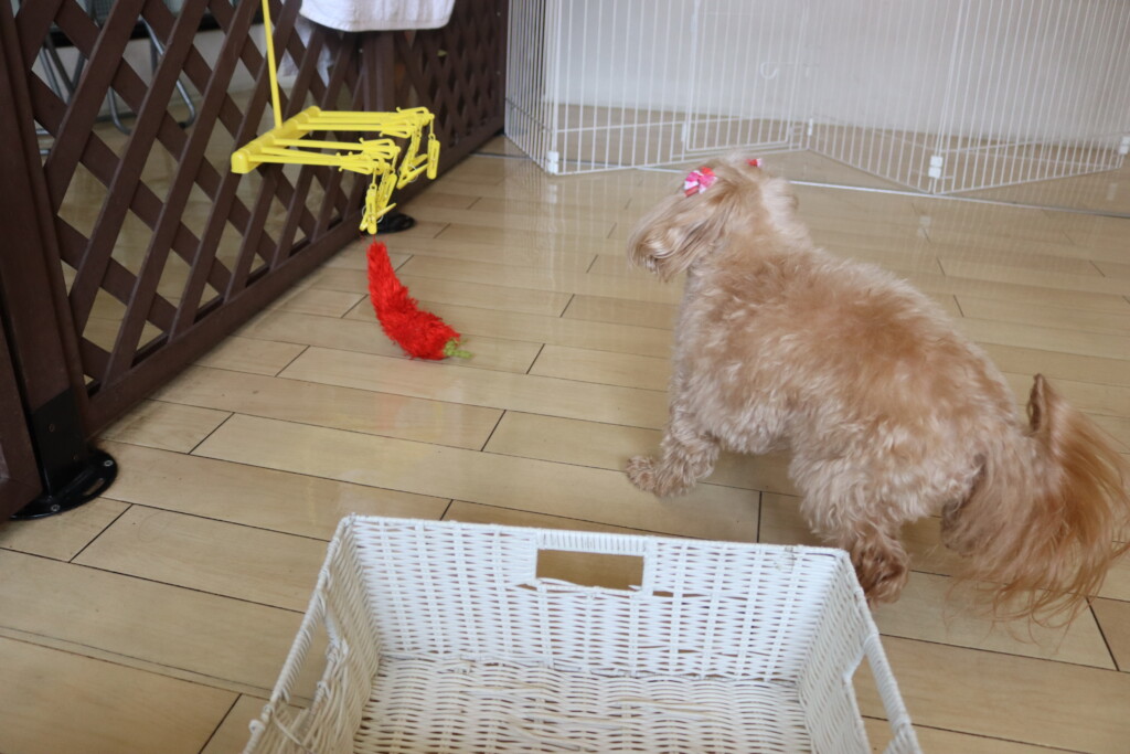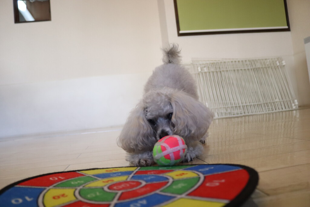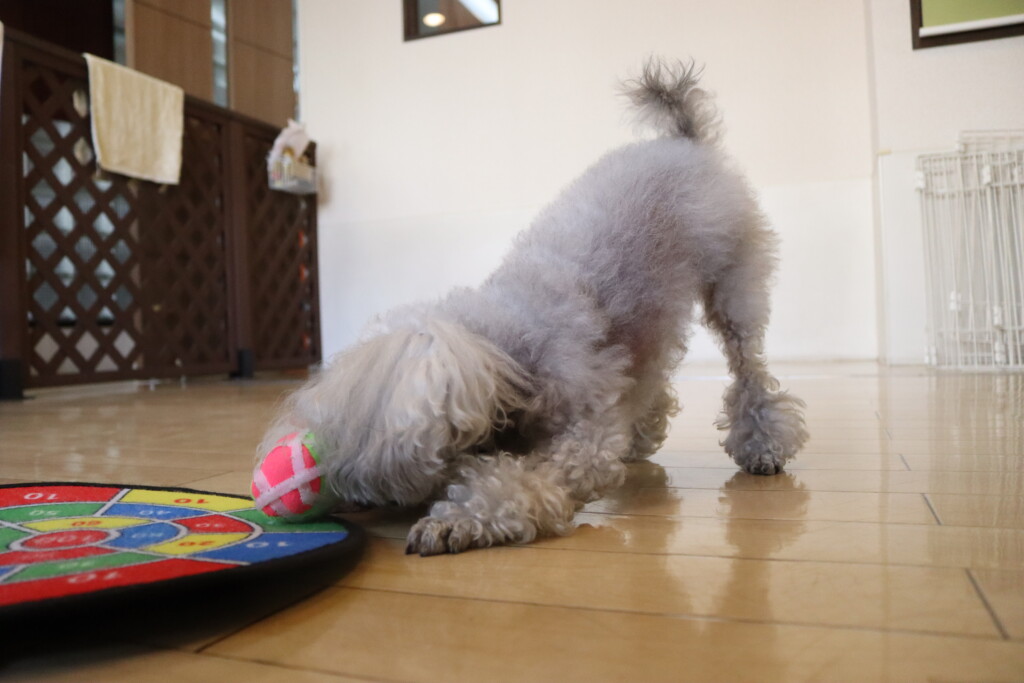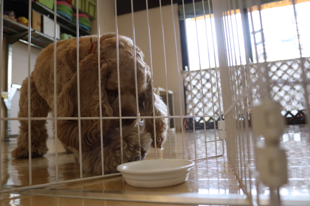 サークルの中に食器を入れ入口を探すとフードを食べることを出来るのですが、フードをGET出来る子もいれば入口を探し出すことが出来ず諦めてしまう子もいました(笑)