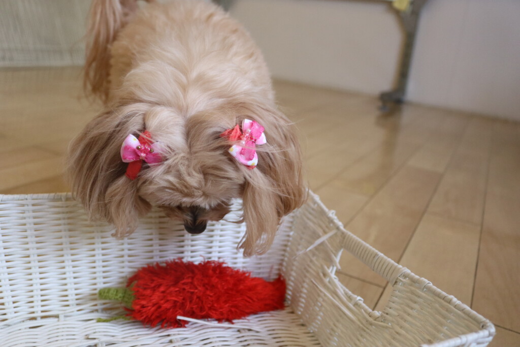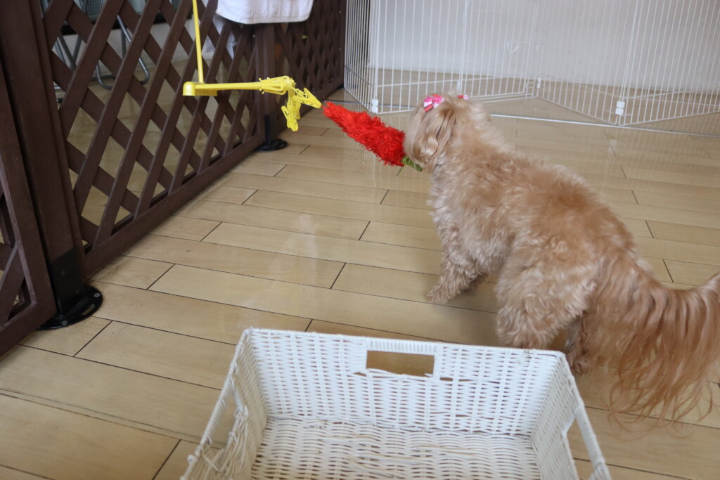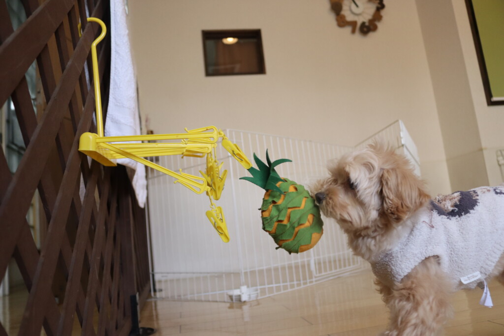 大好きなオモチャを洗濯バサミから取ろうとする3頭!