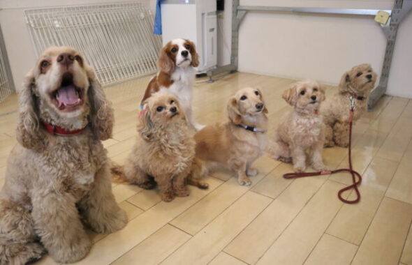 室内ではハミガキが出来るよう、マズルを掴んだり歯を触る練習をしています!
