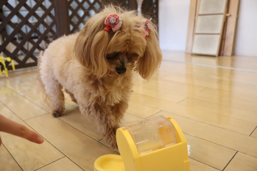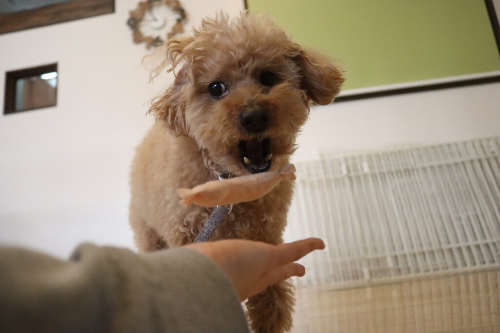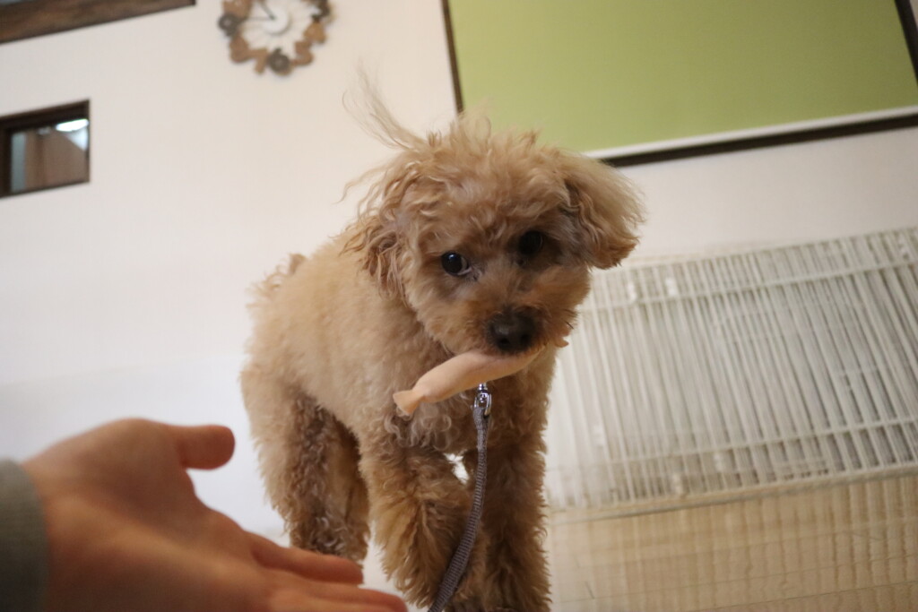 子どもたちの声や走り回る音などが気になる様子でしたが、大好きなフードはモグモグと食べることが出来ましたよ♪