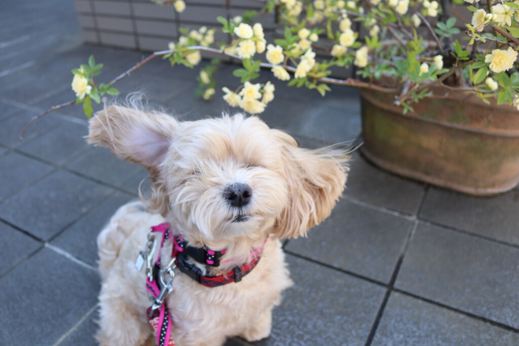 今日は風が強く、気にする茶々ちゃんでしたが、得意のハンドターゲットをしながら頑張って歩くことが出来ていましたよ☺