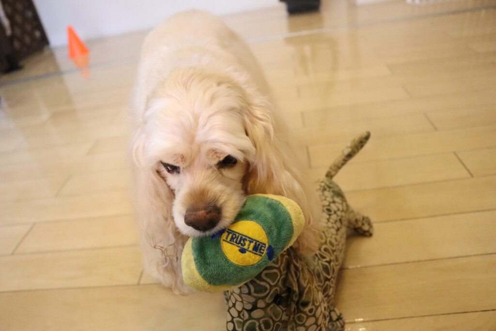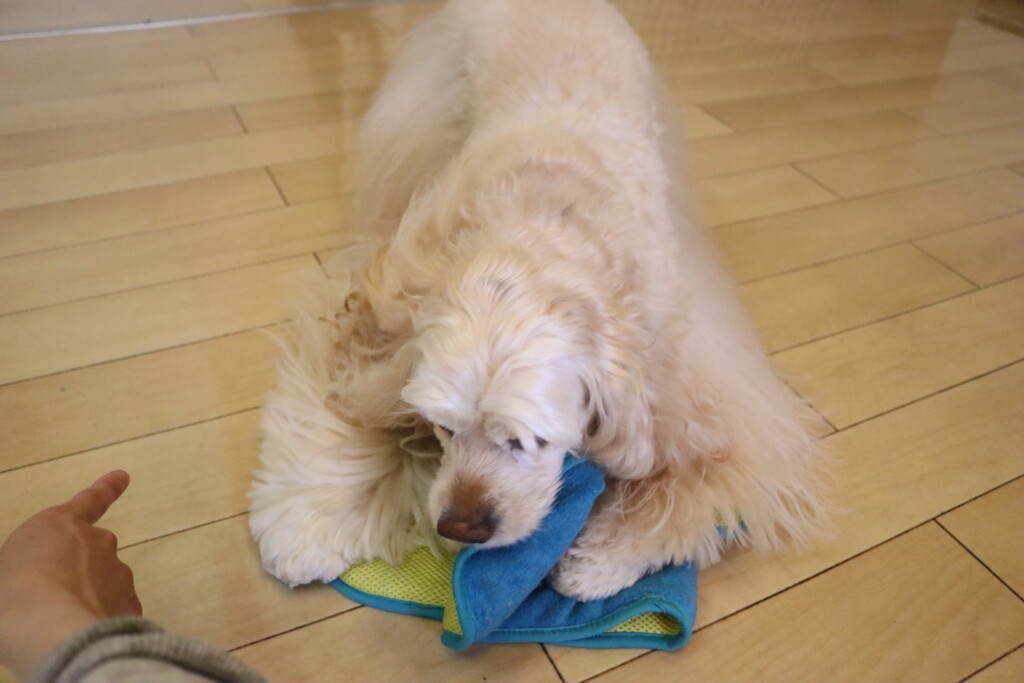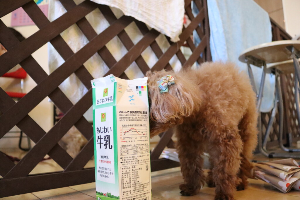 以前はおそるおそるでしたが、だいぶ慣れてきたようで今日は中のおやつを全てゲット!!