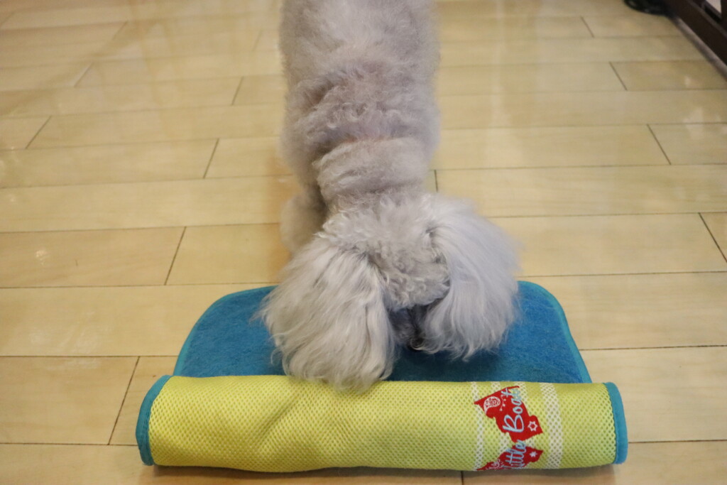 シルヴィーちゃんも固まってしまうことがありましたが、フードを食べながら頑張りました💪