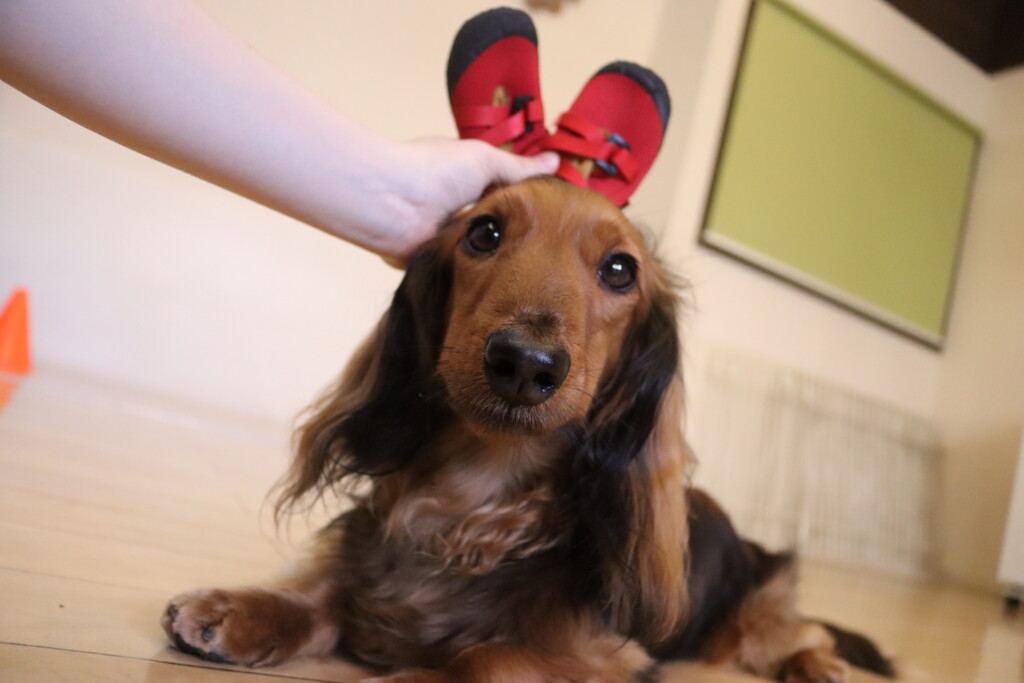 お鼻にフードを乗せられることが気になるようなので、少しずつ練習中🌟