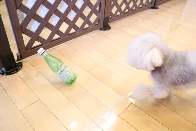 いつもは倒れた時に音がしないようにタオルを敷いていますが、今日はそのまま床に置いた状態でトライ★