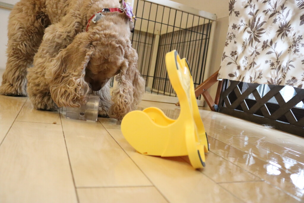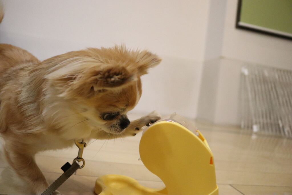 「これはどうやって取るんだー?」と前足で掻いてると、