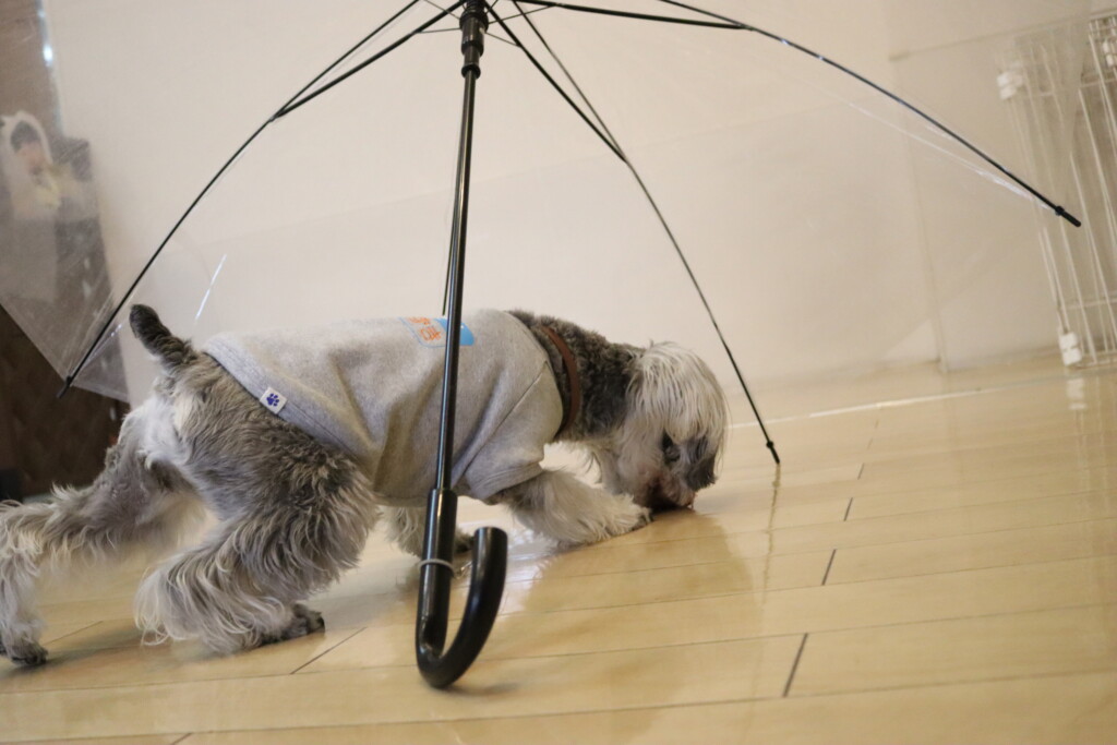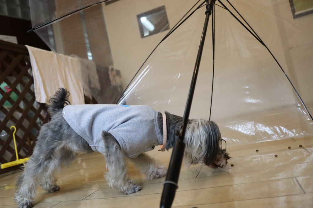 こむぎちゃんは久しぶりに傘慣れ🌟