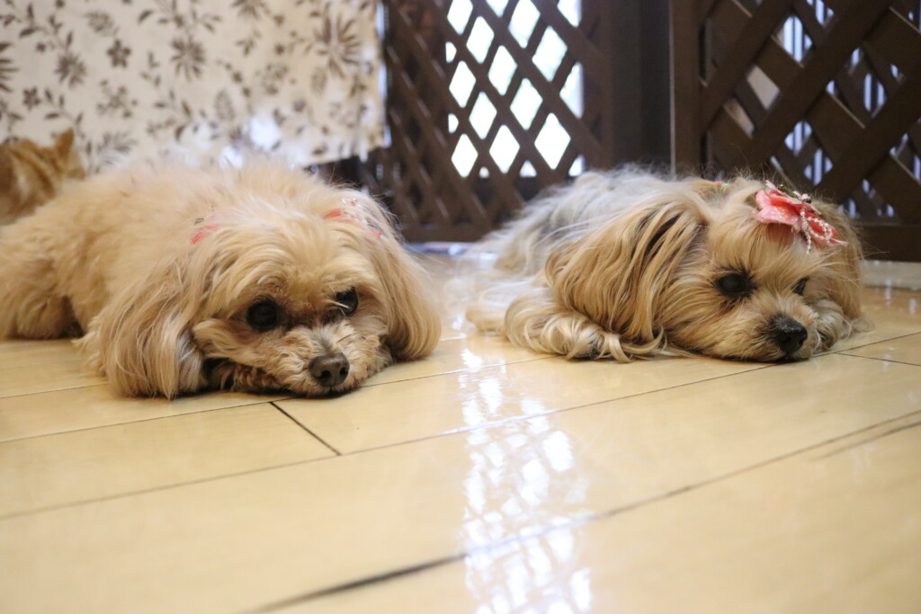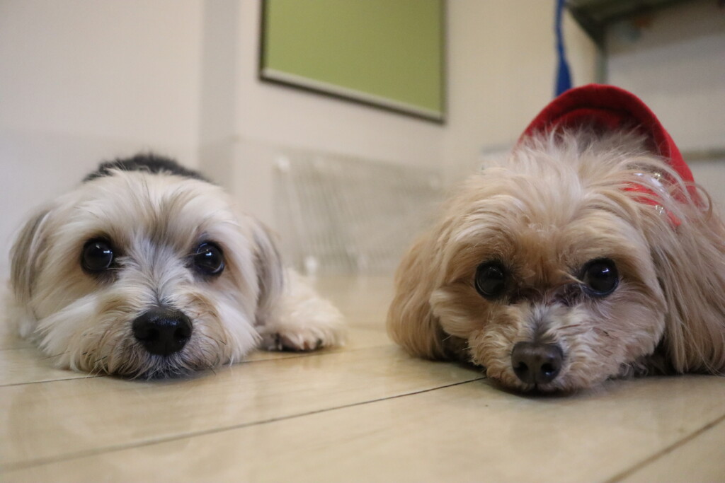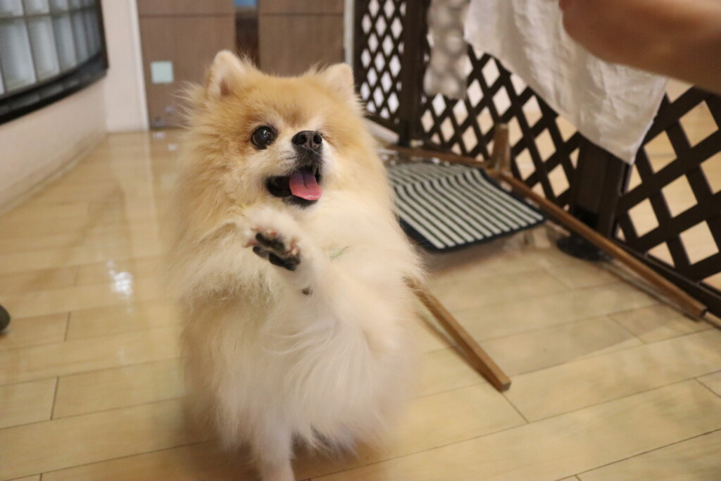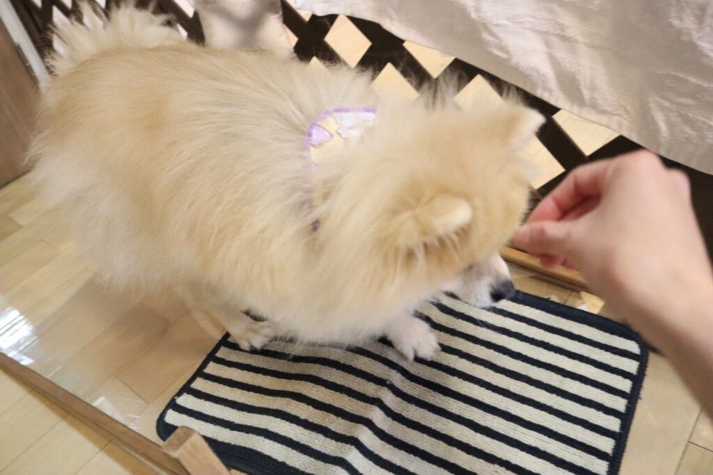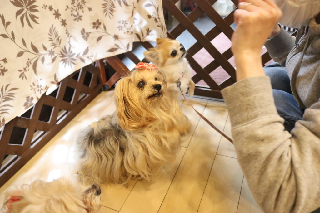 苦手なようで低姿勢になるあずきちゃん💦