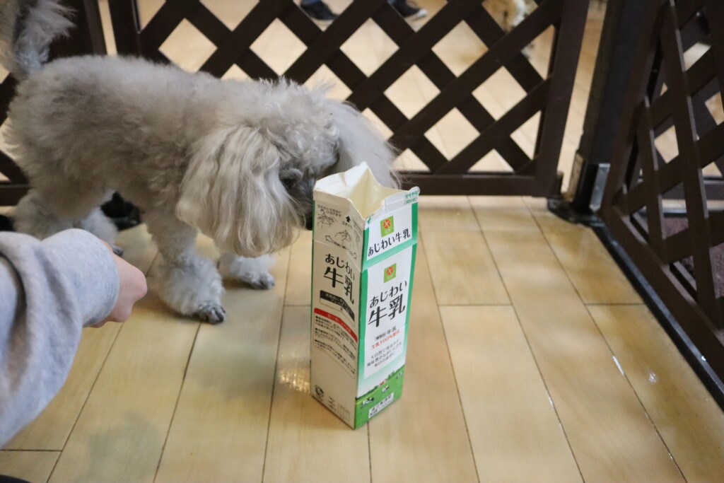 「やったわ…!」と牛乳パックを見つめるシルヴィーちゃんです(*´ω`)