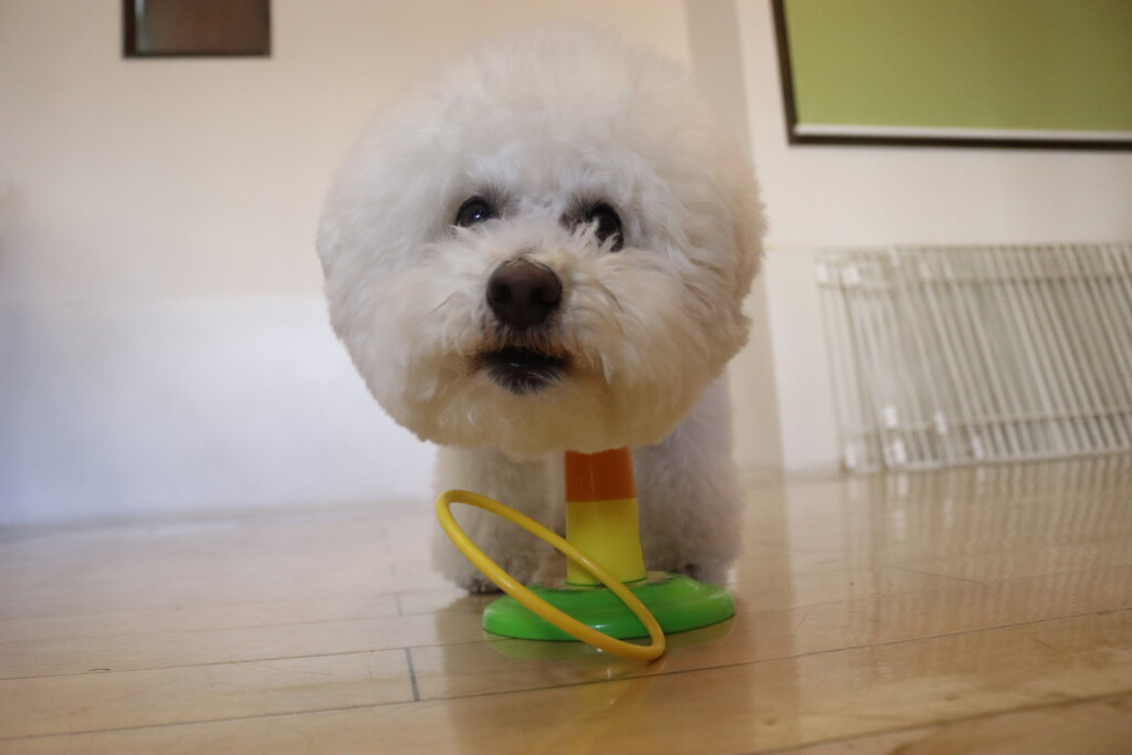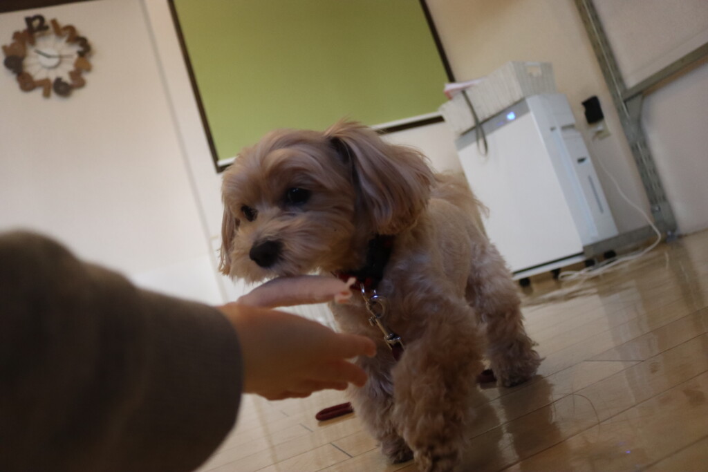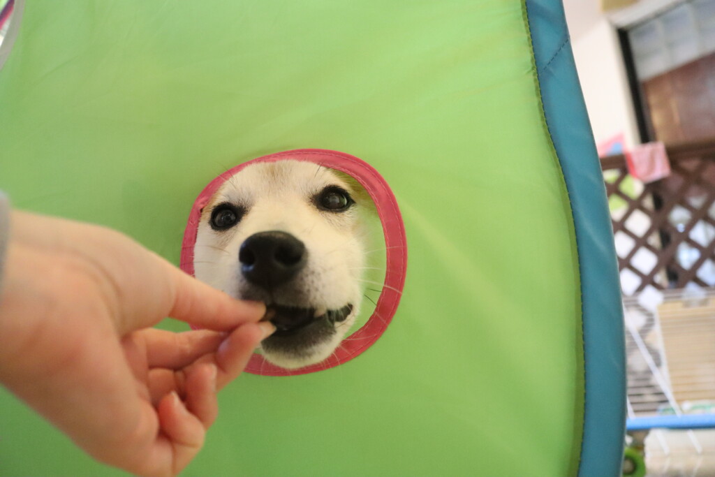 以前は輪っかに顔を入れるのも怖がっていた甜ちゃんですが、すっかり慣れて上手に受け取ってくれるように✨
