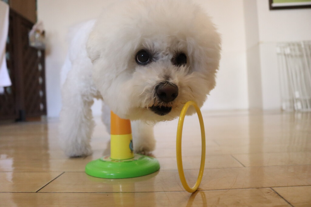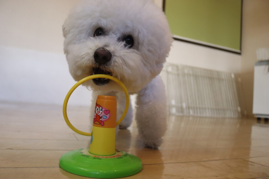 ノアくんは入れるバージョンの輪投げを練習🎵
