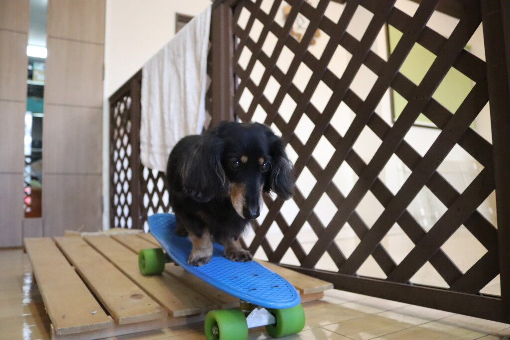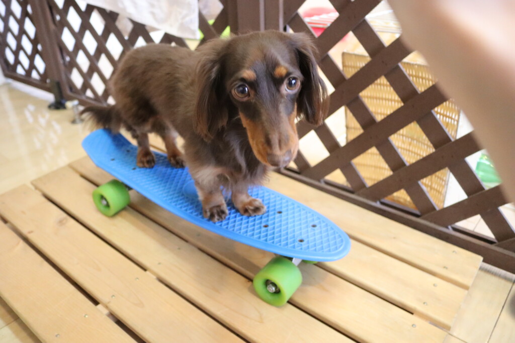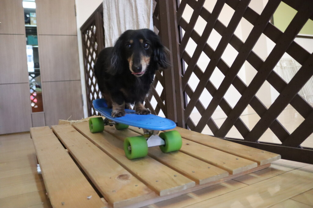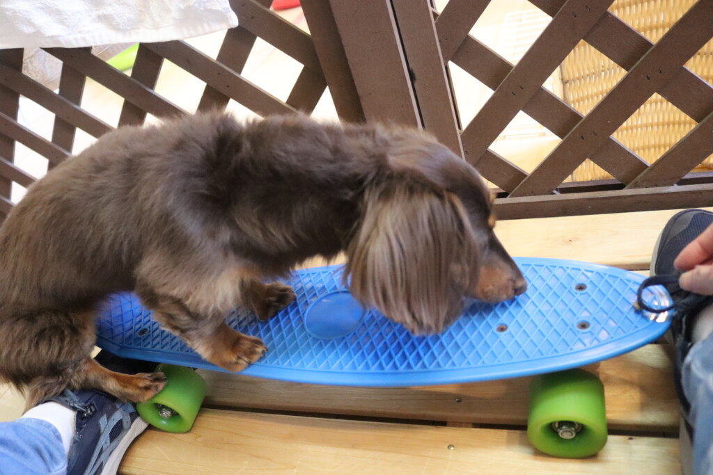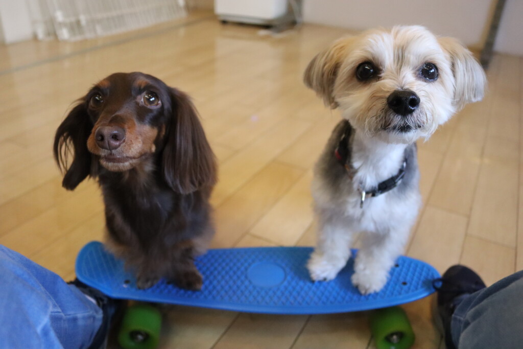 2頭とも仙川店で大流行中の坂道にあるスケボー乗りにトライ!