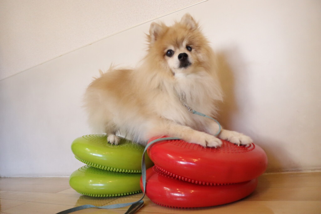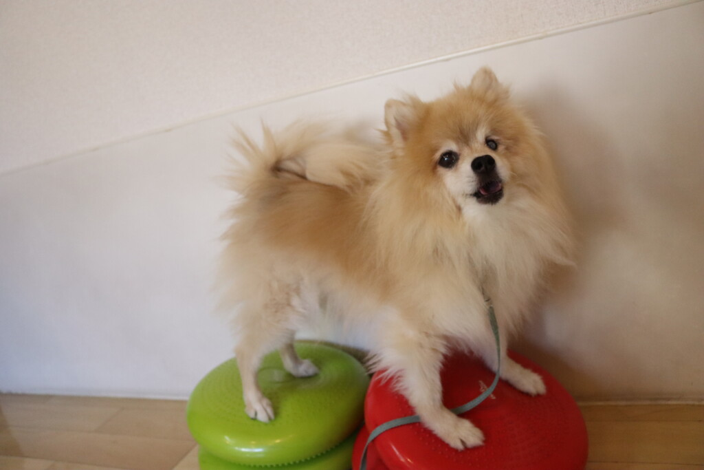 4段重ねたバランスディスクでポージングを取ったり🎵