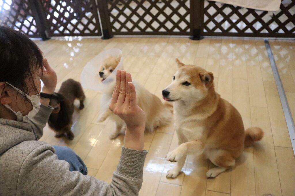 むぎくんはめいちゃんに協力してもらい犬慣れ練習!