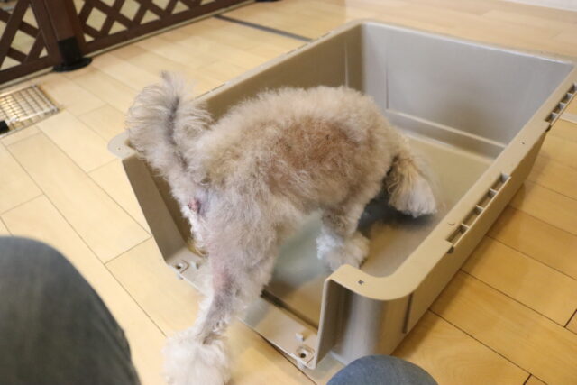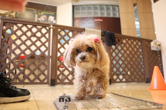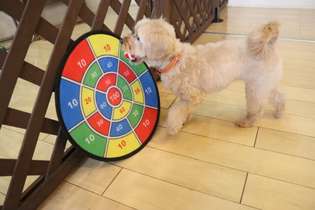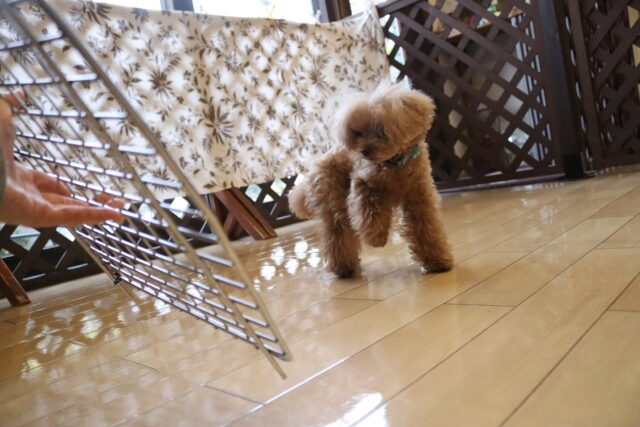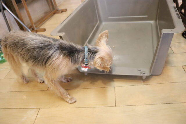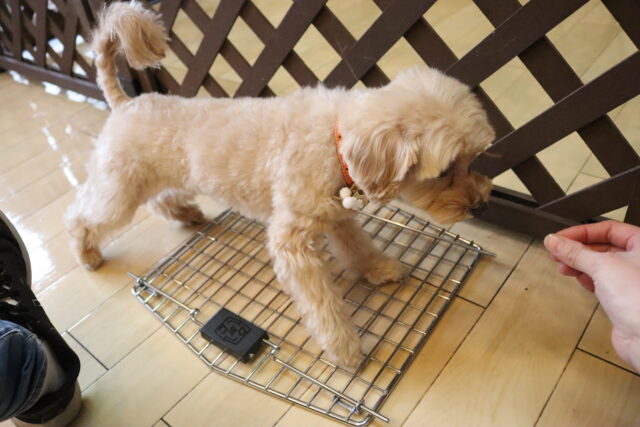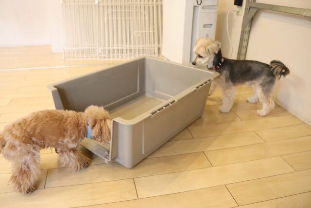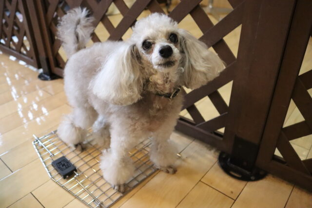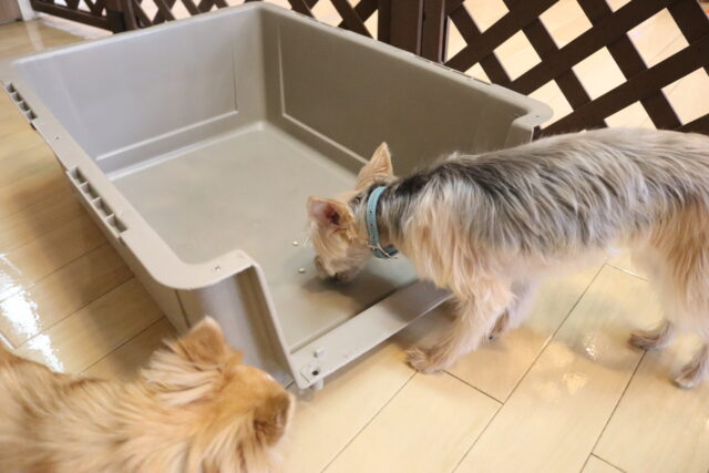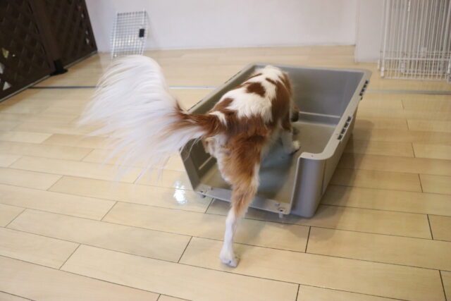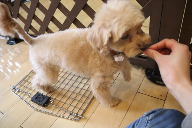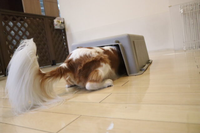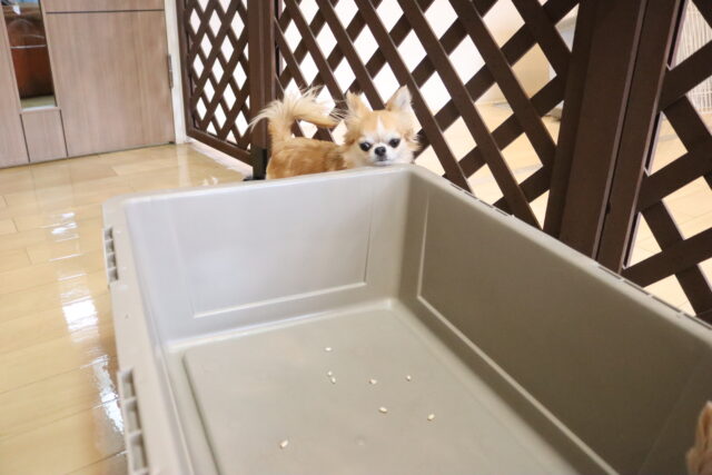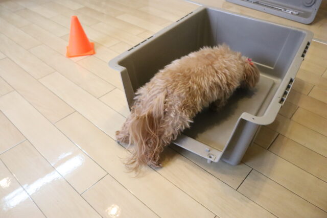 難易度を上げてクレートの中に扉を入れてみると、少しためらいながらもこちらも見事成功!得意気なシルヴィーちゃんです🥰