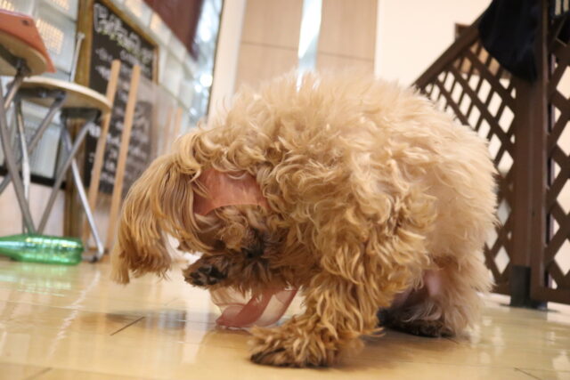 フードをばらまいてみると舌なめずりをしながらも、