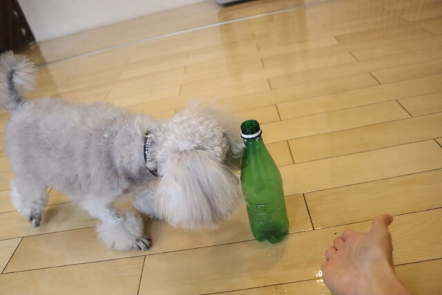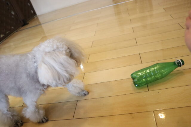 シルヴィーちゃんは得意になってきたペットボトル倒しを練習!