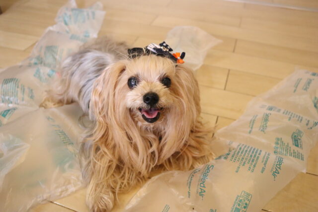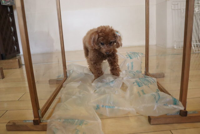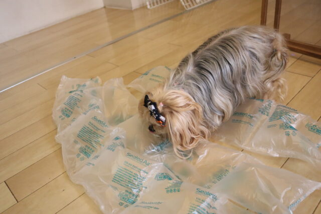 みんなそれぞれビニール素材の緩衝材で物慣れを行っています🌟