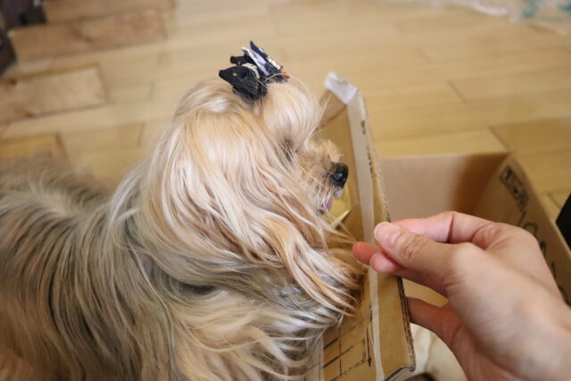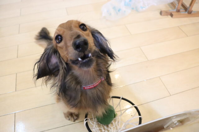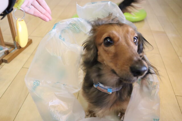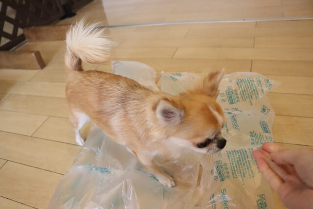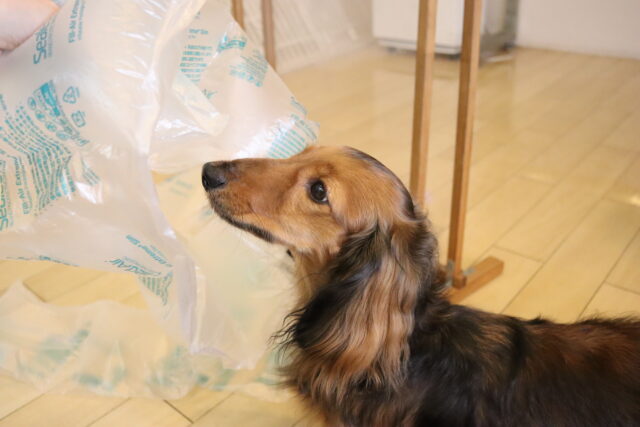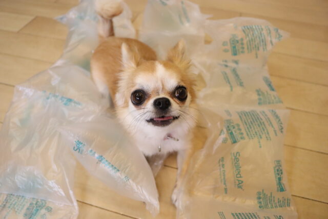 「なんの音だ…?」と振ってる尻尾がビニールに当たって聞こえるガサガサという音を気にする可愛いらんくん(*´ω`)