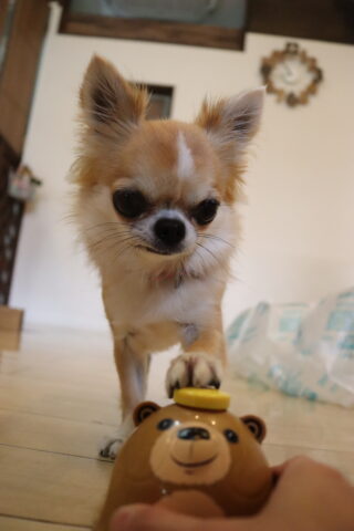 呼び鈴鳴らしが上手になってきたので、デスクベル鳴らしにも挑戦🌟