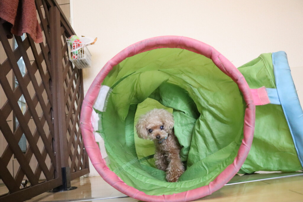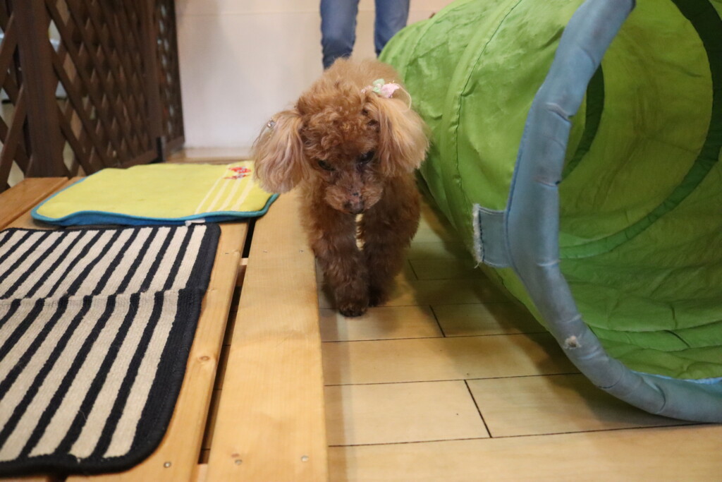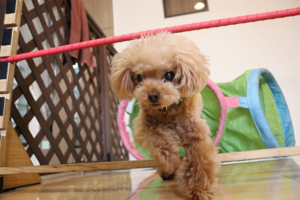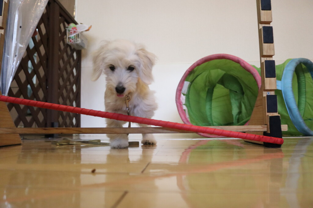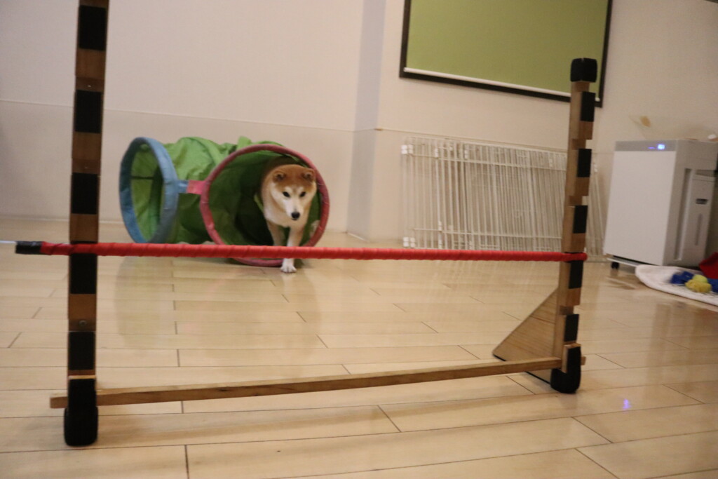 雨降りの今日はお外に行けない分、小春ちゃん、金ちゃん、礼くん、パピーくん、マチルダちゃんはトンネルとハードルのミニアジリティーで体を動かして楽しみました🎵