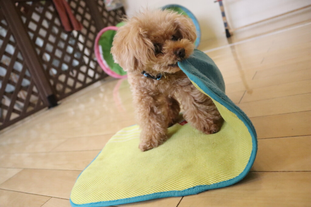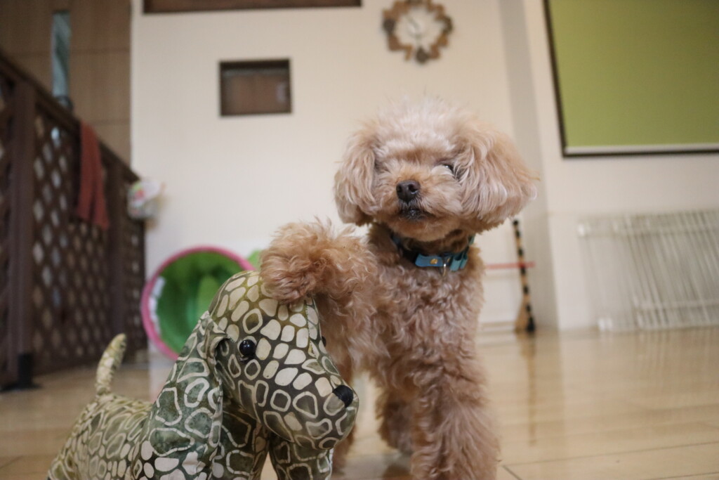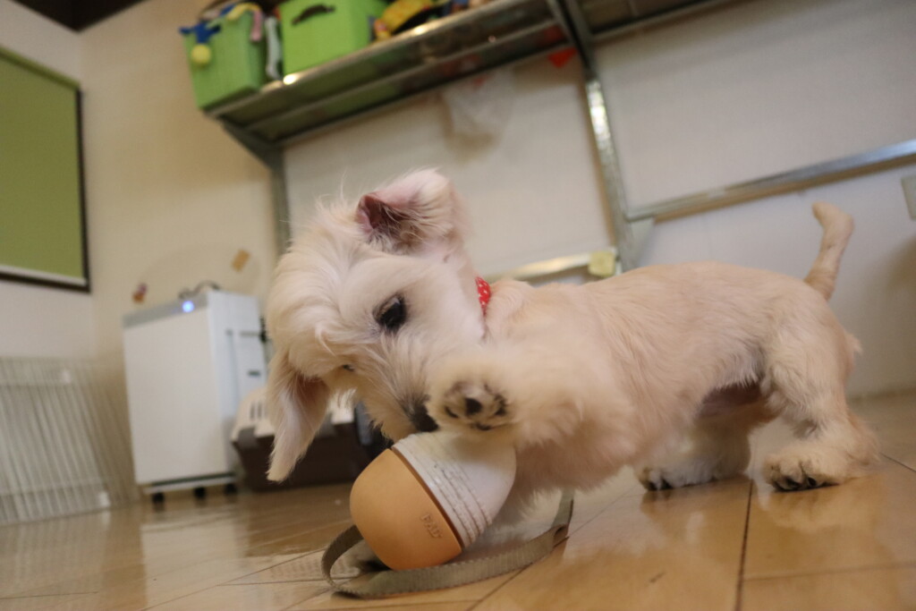マロンくんも今日は雨降りでお散歩に行けない分、張り切って運動🎵