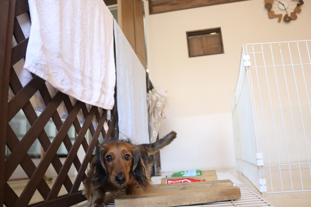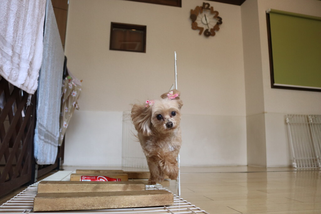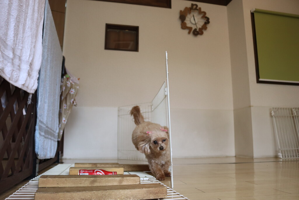 物が置いていないスペースを見つけながらダッシュで渡るルルちゃん!