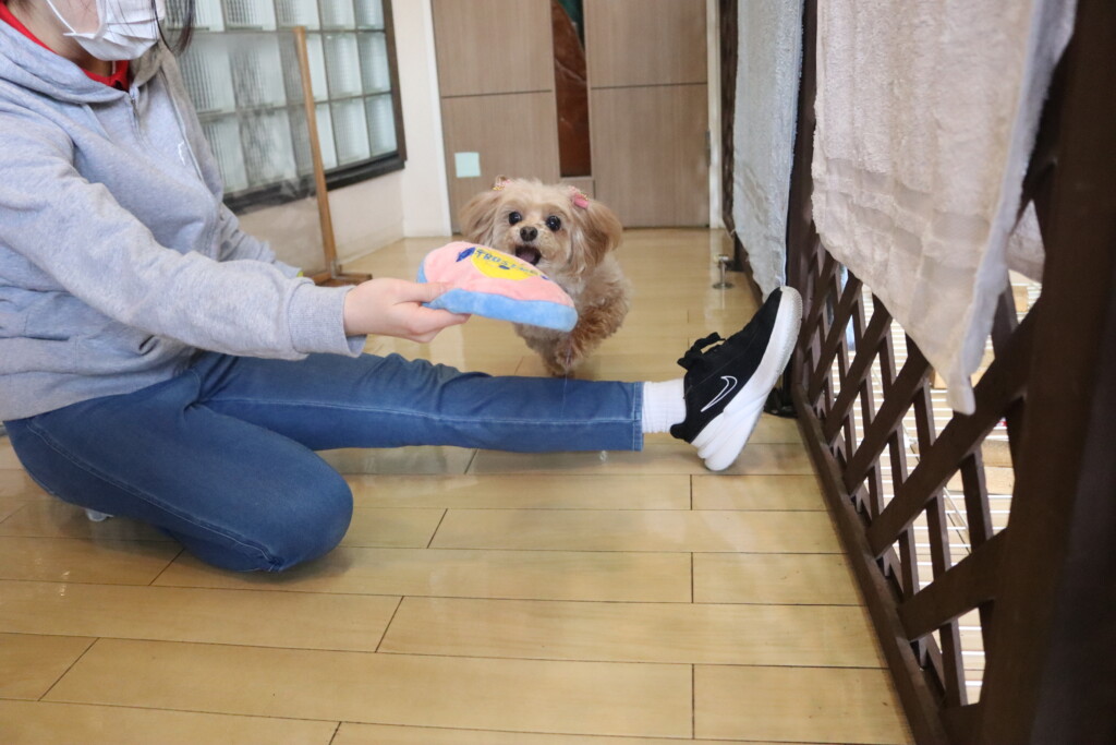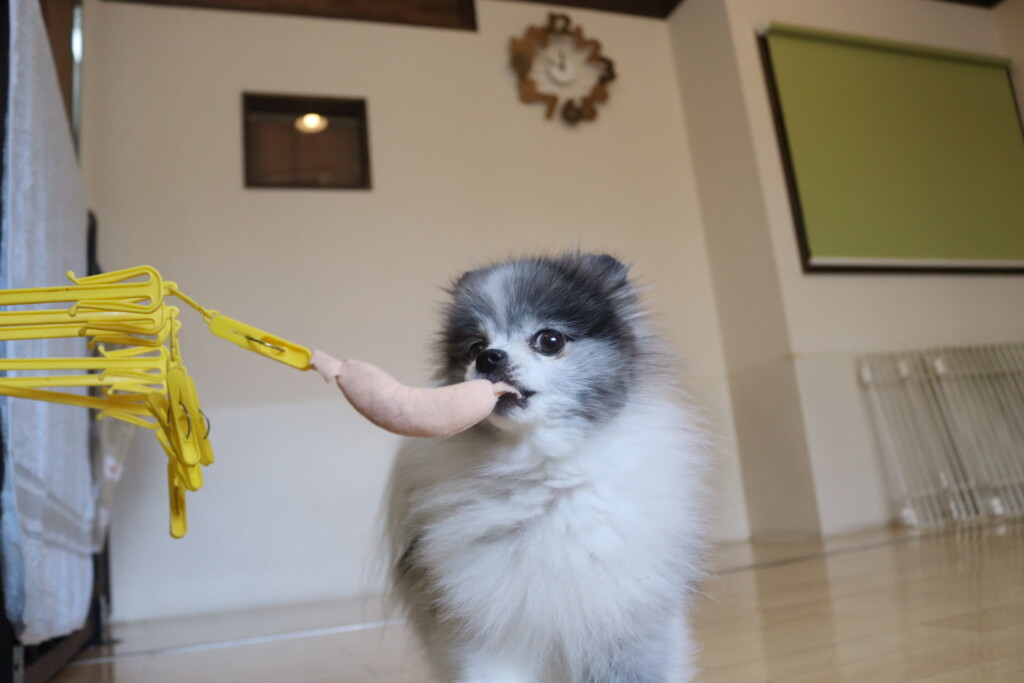 最後はオモチャを咥え引っ張って取ろうと頑張るミランちゃんです👏
